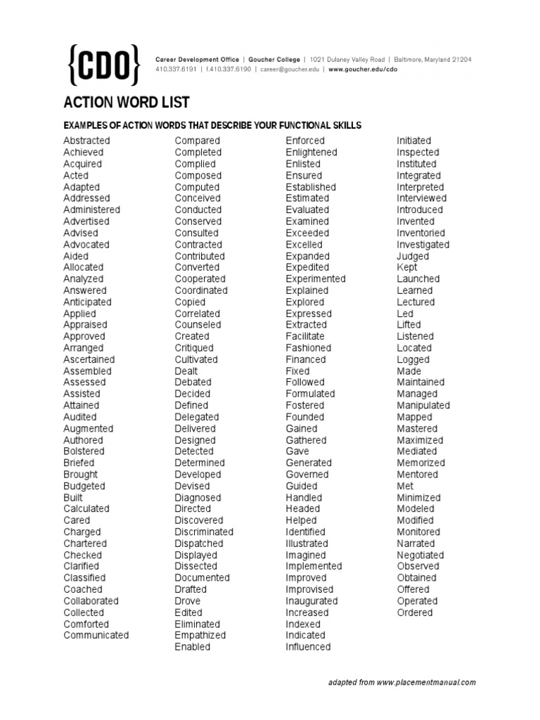 Action Words List Resume Action Word List Lovely Action Words For